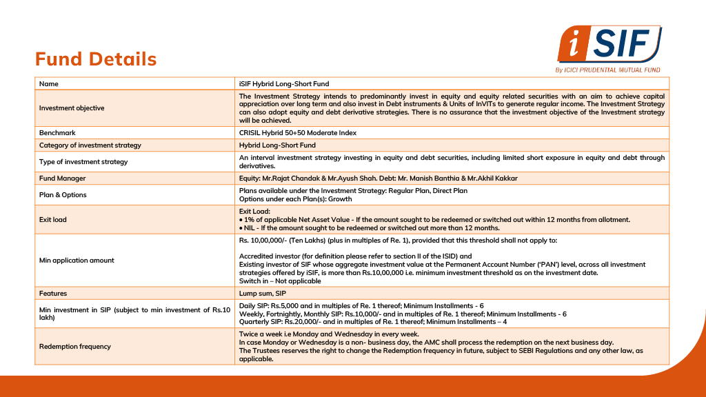 The ICICI Prudential iSIF Hybrid Long–Short Fund